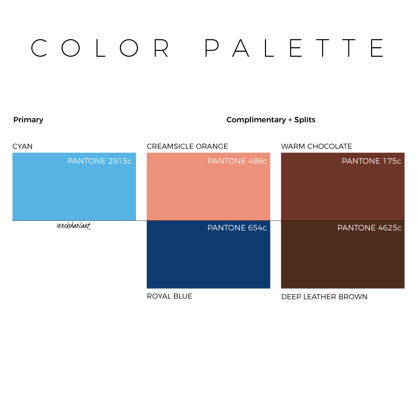 The Logo Idea + Color Choices: I wanted negative space to create shapes and further enhance the logo's appearance. I used waves beneath the fruit to create movement as if the fruit was falling and mixing with the chocolate, causing it to go from light to dark. My color choices are a mix of left complementary colors with my main color, cyan. Being that my brand uses chocolate, I went for warm brown shades as well as creating a connection with the brand's product.